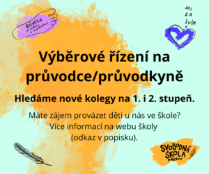 Vyhlašujeme výberové řízení na průvodce a průvodkyně na 1. i 2. stupni. Více informací najdete zde.